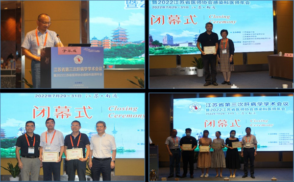 7月29~31日,由江苏省医学会肝病学分会和江苏省医师协会感染病医师分会共同主办的“江苏省第三次肝病学学术会议暨 2022江苏省医师协会感染科医师年会”在南通召开。大会开幕式由苏州大学附属第一医院赵卫峰教授主持,江苏省医学会副会长兼秘书长胡寅,南通市第三人民医院党委书记蔡卫华,江苏省医学会肝病学分会主任委员李军教授等致辞。