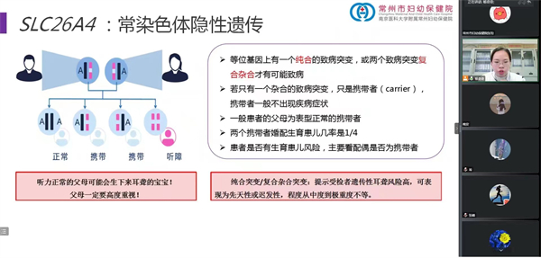 11月24日下午,由江苏省医学会医学遗传学分会主办,常州市妇幼保健院承办的“送教到基层——新生儿耳聋基因筛查培训”以线上会议形式举办。会议由常州市妇幼保健院医学遗传科副主任张玢主持,江苏省医学会医学遗传学分会副主任委员、常州市妇幼保健院副院长虞斌致辞。