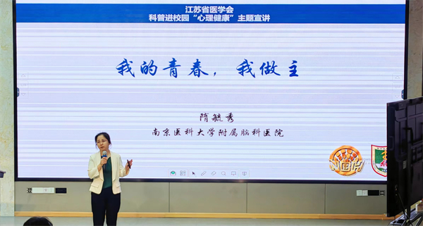 本次宣讲特邀南京市脑科医院隋毓秀教授作“我的青春,我做主”心理健康主题讲座。讲座内容围绕青春前期的学生心理及生理发育特点、如何识别自己的情绪问题、如何有效地自我调节等几方面展开。隋教授将深奥的专业知识用通俗易懂的语言和形象幽默的图文进行了阐述,并通过常见案例分析,让同学们学到了调节情绪的妙招。
