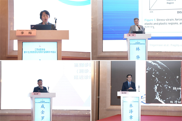 主旨报告环节,中华医学会骨质疏松和骨矿盐疾病分会主任委员李梅教授,前任主任委员章振林教授,副主任委员岳华教授、徐又佳教授,以及江苏省医学会骨质疏松与骨矿盐疾病分会主任委员华飞教授,候任主任委员孙强教授,名誉主任委员林华教授、成金罗教授等省内外专家围绕骨质疏松症和骨矿盐疾病的前沿研究、精准诊疗、基层防控、多学科骨折联络服务、科学普及等内容作精彩报告,分享了领域最新研究成果与学术进展。