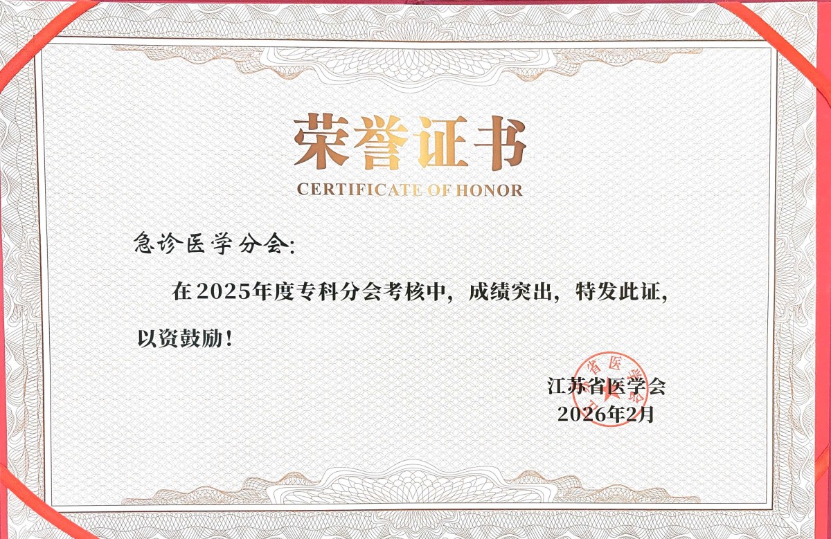 2月7日,江苏省医学会2026年度工作会议在南京隆重召开。急诊医学分会凭借全年扎实工作与突出成效,在全省91个专科分会中脱颖而出,一举斩获先进专科分会、优秀学术会议、优秀主任委员三项殊荣。这充分展现了江苏急诊医学在学科建设、学术引领、行业服务方面的标杆水平。