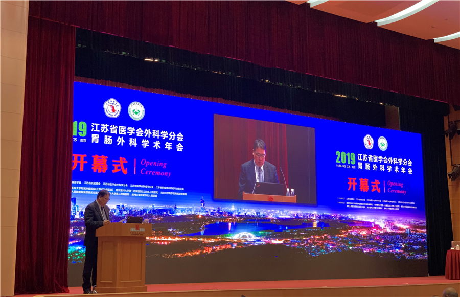 2019年11月8-9日,由江苏省医学会、江苏省医学会外科学分会、江苏省医学会肿瘤学分会、江苏省抗癌协会共同主办,南京医科大学附属肿瘤医院(江苏省肿瘤医院)、南京医科大学第一附属医院(江苏省人民医院)、南京大学医学院附属南京鼓楼医院、中国人民解放军东部战区总医院、南京医科大学第二附属医院、扬州大学附属苏北人民医院共同承办的2019年江苏省胃肠外科学术年会在南京召开。开幕式由江苏省抗癌协会胃癌专业委员会主任委员、江苏省肿瘤医院普外科主任陈环球教授主持,江苏省肿瘤医院张勤副院长,江苏省抗癌协会吴建中秘书长,江苏省医学会外科学分会候任主委徐泽宽教授,江苏省医学会副秘书长马敬安等出席开幕式并致辞。