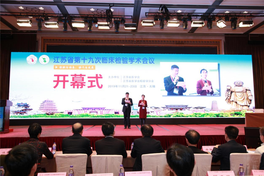 2019年11月21~23日,由江苏省医学会、江苏省医学会检验学分会主办的江苏省第十九次临床检验学术会议在无锡召开。开幕式由江苏大学医学院钱晖教授和江苏省人民医院徐建教授主持,江苏大学医学院院长、江苏省医学会检验学分会主任委员许文荣教授,中华医学会检验学分会主任委员王成彬教授,无锡市医学会徐智慧副会长,江苏省医学会马敬安副秘书长等出席开幕式并致辞。