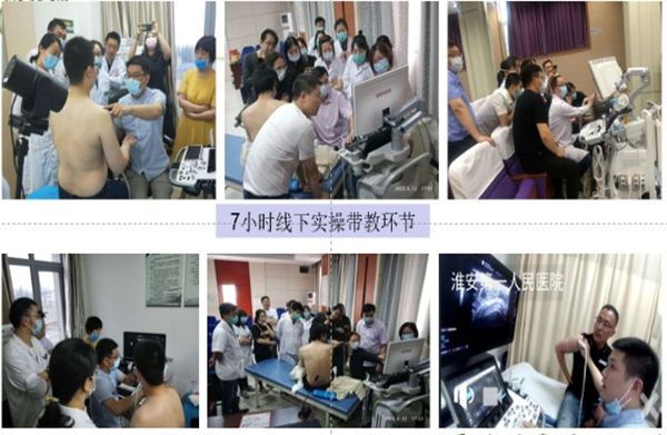 除网络授课直播外,淮安市四家协办医院设立为分会场进行现场和云平台网络远程实时带教实操学习。四组学员对所学习的关节和神经进行了实操学习,肌骨超声巡讲团的讲师们还对部分学员进行了考核。