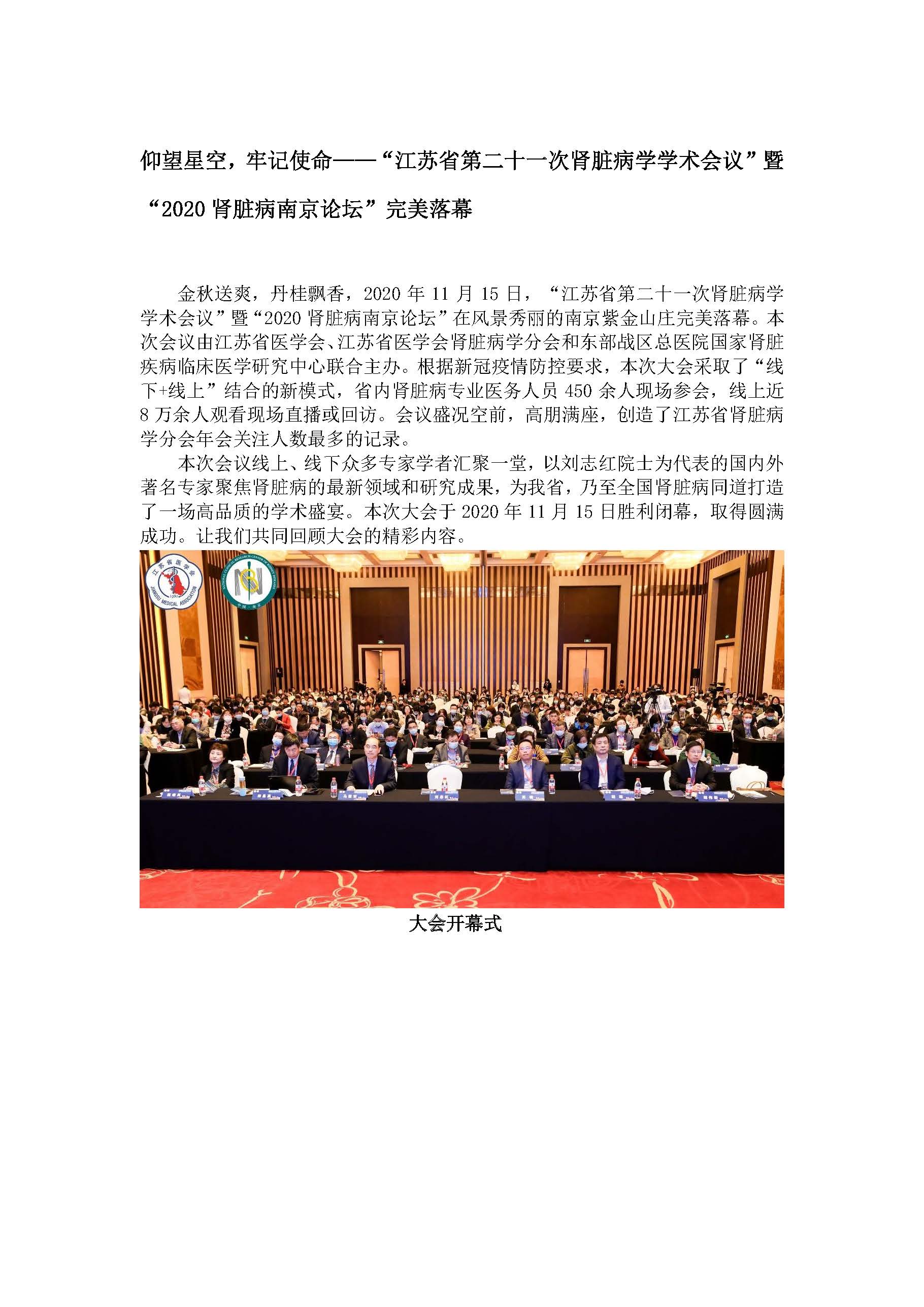 仰望星空,牢记使命——“江苏省第二十一次肾脏病学学术会议”暨“2020肾脏病南京论坛”完美落幕