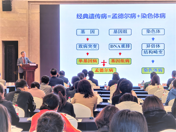 本次会议围绕“医学遗传与出生缺陷”主题,邀请了国内多位专家学者就医学遗传学发展的重大创新、技术规范和临床实践等方面展开学术交流。其中,哈尔滨医科大学校长张学院士从疾病角度详细讲解了基因和遗传的基本问题,介绍了疾病与基因的复杂关系。中国医学科学院北京协和医学院黄尚志教授就疑难疾病的产前诊断和遗传咨询问题展开讨论,指出产前诊断难度大,需重视遗传咨询。南京大学医学院王亚平教授重点讲解了Microcystins 抗纤维化的功能鉴定及其分子机制。江苏省医学会医学遗传学分会主任委员、苏州市立医院李红教授详细讲解了复发性流产的病因和临床咨询,提出遗传因素是复发性流产的重要原因之一。江苏省医学会医学遗传学分会前任主任委员、东南大学医学院谢维教授对儿童孤独症神经发育研究进展进行系统介绍,提出关注孕妇产前、围产和产后的因素可能是最有效的预防措施。江苏省医学会医学遗传学分会候任主任委员、南京市妇幼保健院许争峰教授介绍了先天性心脏病的病因、研究历程、遗传学检测方法。