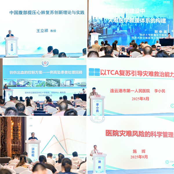本次会议以“高标准、强基层、再攀登”为主题,邀请了省内外灾难医学、急诊医学、中毒学及灾难护理学等专业领域的专家进行了分享及探讨。主旨报告环节,王咏红会长、中华医学会灾难医学分会主任委员刘中民教授、中华医学会灾难医学分会秘书长王立祥教授、江苏省疾病预防控制局副局长顾帮朝、江苏省医学会急诊医学分会前任主任委员李小民教授、江苏省医学会中毒学分会前任主任委员张劲松教授、江苏省医学会灾难医学分会主任委员陈建荣教授和江苏省医学会灾难医学分会副主任主任委员施辉教授等围绕“人工智能大模型构筑数智医疗新生态”“韧性城市灾难医学救援体系构建”“科创中国腹部提压心肺复苏先导技术理论与实践”“构建具有人性的灾难医学救援体系”“以TCA复苏引导灾难救治能力提升”“综合医院急性中毒规范化救治的几点进展”“卫生应急和演练体系建设的标准和实践”和“医院灾难风险的科学管控”等方向分别进行了精彩报告。