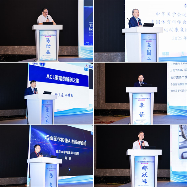 本次会议以“功能至上,AI智创”为主题。围绕肩、肘、腕、髋、膝、脊柱、足踝运动医学及运动促进健康、运动医学护理、运动医学青年医师培养等核心领域,与会专家们深入探讨AI如何赋能基础研究与临床实践,共商“以功能为核心、以智能促创新”的发展路径。其中,国家体育总局运动医学研究所原所长、国家体育总局体育医院原院长李国平教授以“中国运医发展趋势:边界与跨界”为题,探讨运动医学的边界问题和跨界发展,提出学科交叉融合的必要性,并通过案例展示未来发展方向。复旦大学运动医学研究所所长陈世益教授以“体卫融合主动健康在应对老龄化社会健康危机的对策——运动医学的机会”为题,探讨老龄化社会的健康危机及体卫融合主动健康模式的重要性,强调运动医学在应对老龄化问题中的作用,并提出加强运动医学与公共卫生合作的建议。中华医学会运动医疗分会副主任委员徐卫东教授以“ACL重建的解剖之路”为题,深入剖析前交叉韧带(ACL)重建手术中的解剖学要点,详细阐述手术过程中的关键步骤与注意事项,并结合临床案例分享提高手术成功率与患者术后功能的宝贵经验。中华医学会运动医疗分会副主任委员李箭教授以“生成式人工智能赋能运动医学”为题,探讨生成式人工智能在运动医学领域的应用前景与潜在价值,分析人工智能技术如何助力运动损伤诊断、康复方案制定以及运动医学研究,并展示相关技术在临床实践中的初步成效。复旦大学附属华山医院宝山院区副院长陈爽教授以“运动医学影像的AI临床应用”为题,探讨人工智能在运动医学影像诊断中的应用与发展趋势,介绍了AI技术提升影像诊断精准度与效率的作用,并分享AI辅助影像诊断的临床应用经验。江苏省医学会运动医疗分会主任委员郝跃峰教授以“AI在运动医学的应用进展”为题,介绍AI技术在运动损伤预测、康复方案制定及远程医疗监控等方面的应用,分享了江苏省推动AI与运动医学融合的经验。