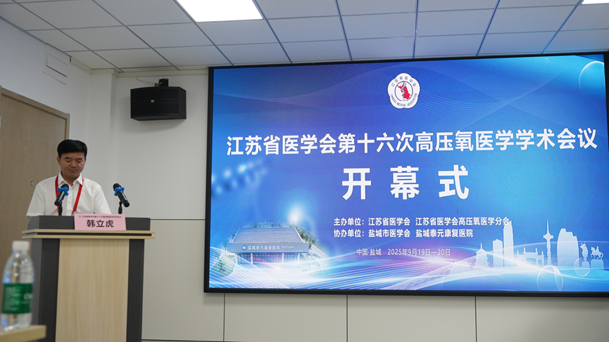开幕式由江苏省医学会高压氧医学分会候任主任委员刘苏教授主持,中华医学会高压氧医学分会主任委员龙颖教授、江苏省医学会高压氧医学分会主任委员韩立虎教授、盐城泰元康复医院副院长杨立群、盐城市医学会秘书长杨益国、江苏省医学会副秘书长许大霞等出席并分别致辞。