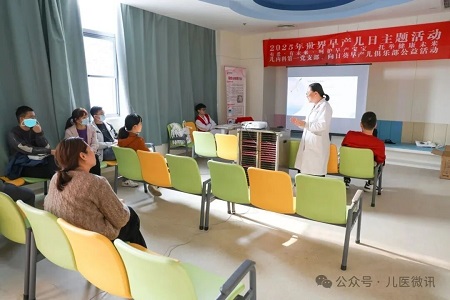 无锡市儿童医院聚焦早产儿喂养与发育核心需求,开展母乳喂养指导、婴儿运动表现测试、暖心家访等系列服务,将专业支持精准送达家庭;苏州大学附属儿童医院打造“初生印记”主题活动,将科普教学、家长经验分享与沉浸式体验相结合,让家庭在互动中收获知识与力量;常州市儿童医院新生儿科与儿内科第一党支部联合开展了“向日葵”早产儿俱乐部暨2025年世界早产儿日活动,通过活动,早产儿宝宝家庭也从中获得了宝贵的健康指导和育儿知识。南京鼓楼医院集团宿迁医院同步开展科普讲座,针对早产儿生活照护、神经系统发育等关键问题为家长答疑解惑,传递科学育儿理念。