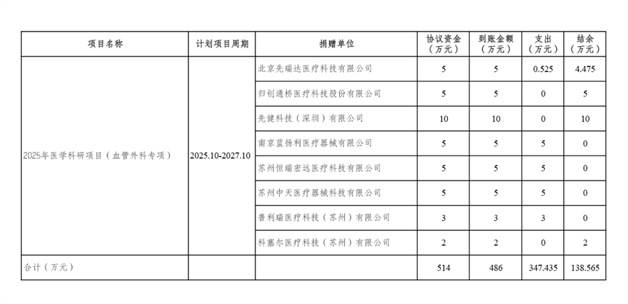 江苏省医学会接受科研项目捐赠资金使用情况公示